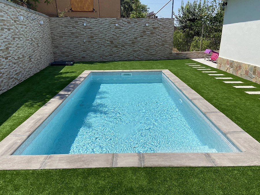 El proyecto consistía en la nivelación de la terraza con la posterior creación de una piscina de 6×3 con un acabado de gresite y una pieza de gres porcelánico.